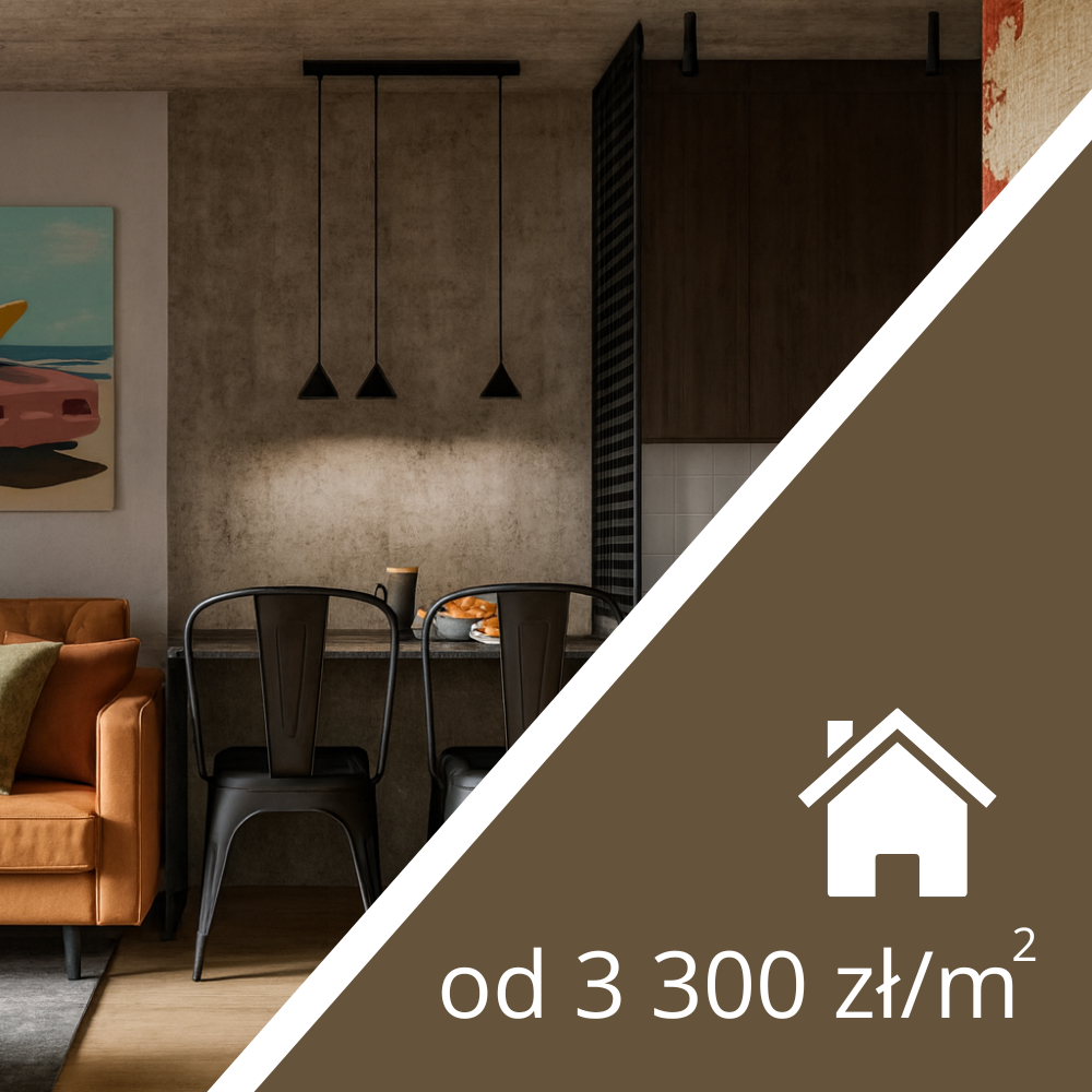 Dla mieszkań dwupokojowych koszt realizacji wnętrza w tym stylu wynosi około 3 300 zł/m².
